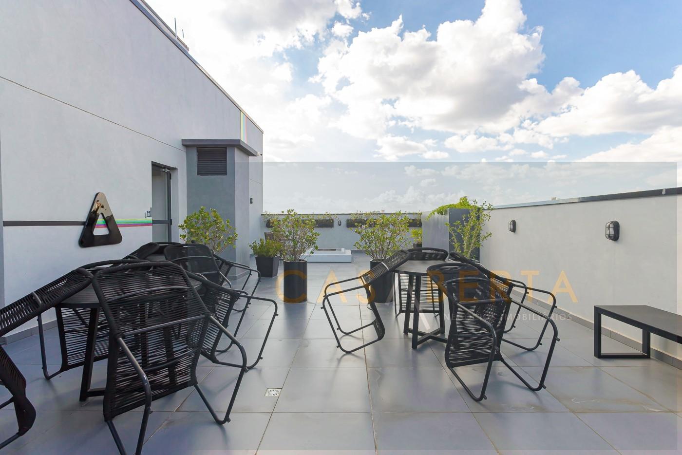 Espaço de convivência  ao ar livre no último andar.